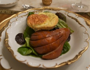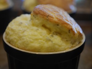 Generally speaking, most people would expect to have a souffle for dessert, but we found a great recipe on Epicurious that we like to serve as a first course. That is because the main ingredient in the souffle is goat cheese. This souffle is a great starter to a main course of beef tenderloin or rack of lamb. It is not as intimidating as a dessert souffle and can be made ahead and refrigerated.
