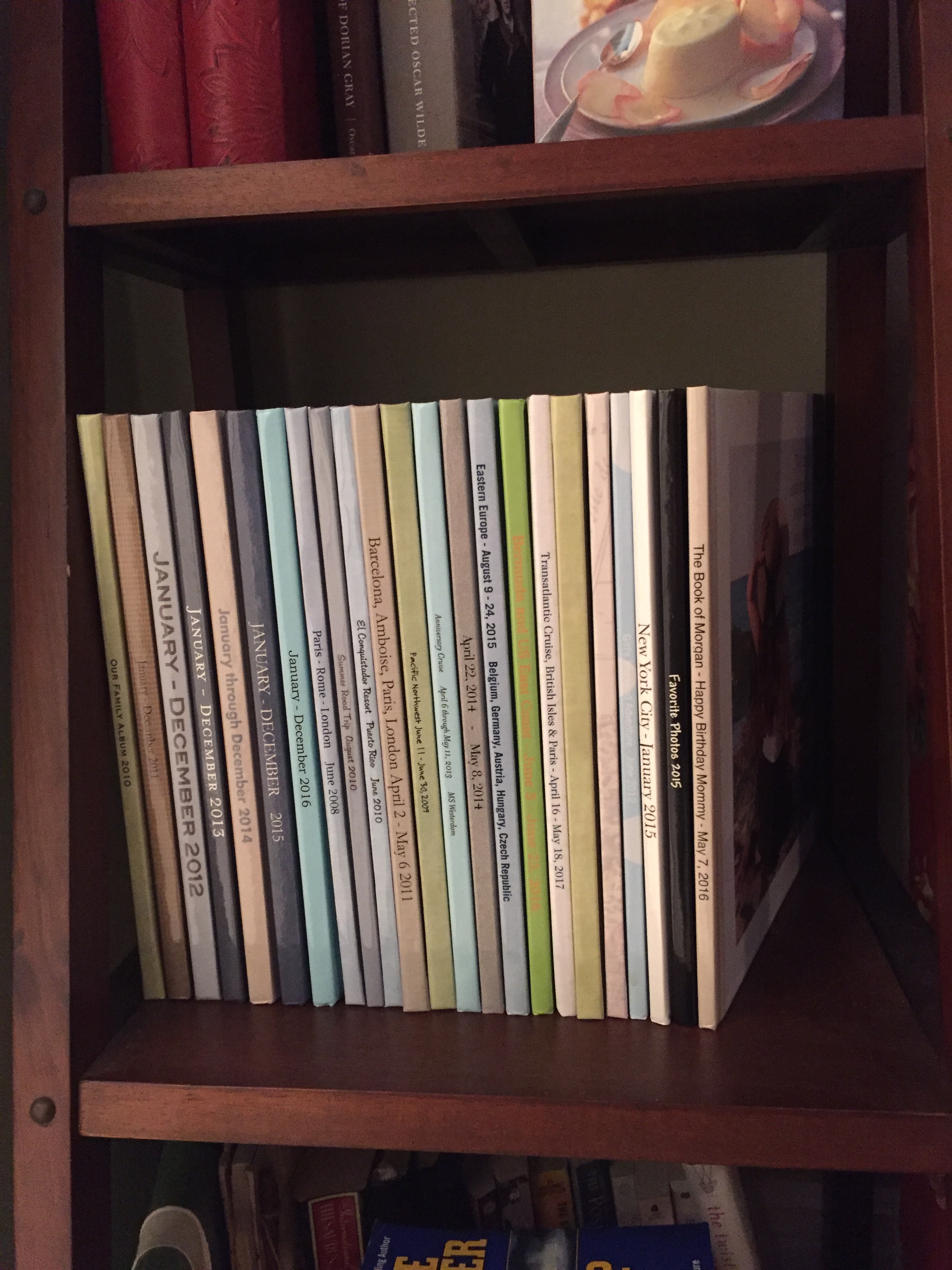 We have a shelf of Shutterfly books just like yours, only ours are the 8×8 size. Since retiring, I’ve created one for every big trip we’ve taken. When we had a family reunion, I was able to send that book to each of the kids. Shutterfly is great!