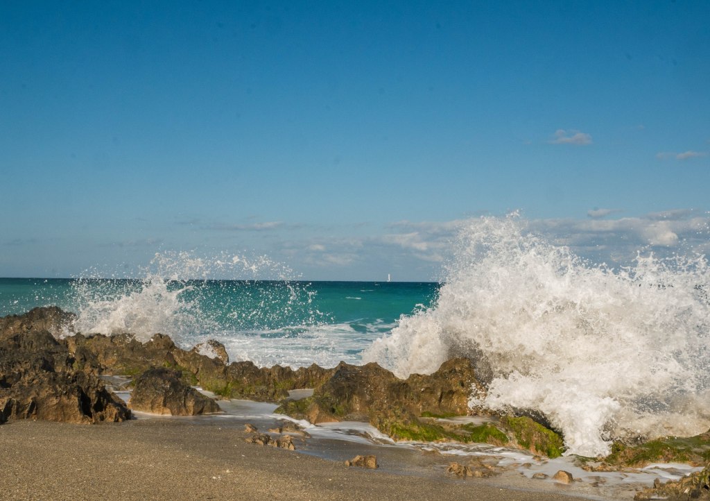 Most of us experience the color blue every day. Just walk outside and look up. I probably see it more than most, because I live in Florida, near the Atlantic ocean, and a grey cloudy day is very rare here. Scenes like the one below are commonplace in my little corner of the world, and I am pretty sure glacier blue is out there somewhere.