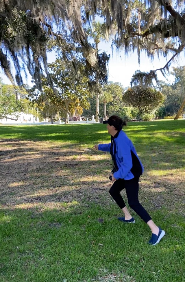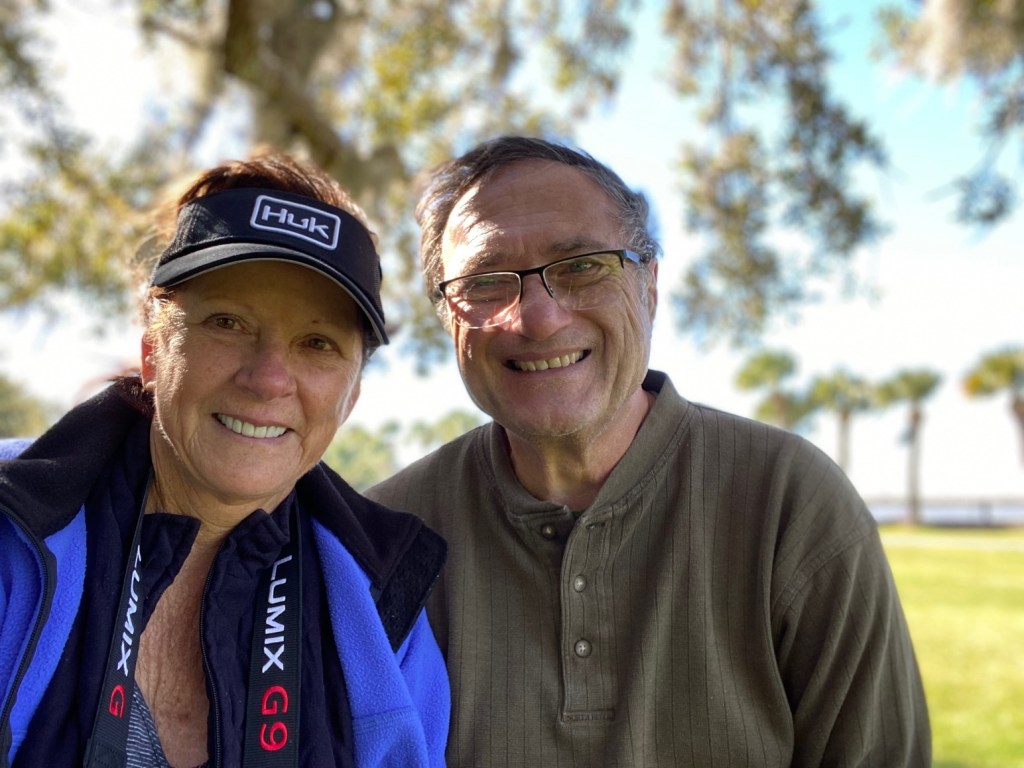 The next day we got out around 10:00 and headed south on the bike path. When we got to the Village, I said, ‘left or right?’ Left would take us to a beach ramp where it would be easy to walk the bikes over the dune to the beach and right would take us to the historic district bike trail. Malcolm replied, ‘right,’ so we set off to explore the Historic District. There are some amazing oak trees there and we like to get our annual commemorative ‘cell-phone tripod’ selfie in celebration of Valentine’s Day in a particular spot.