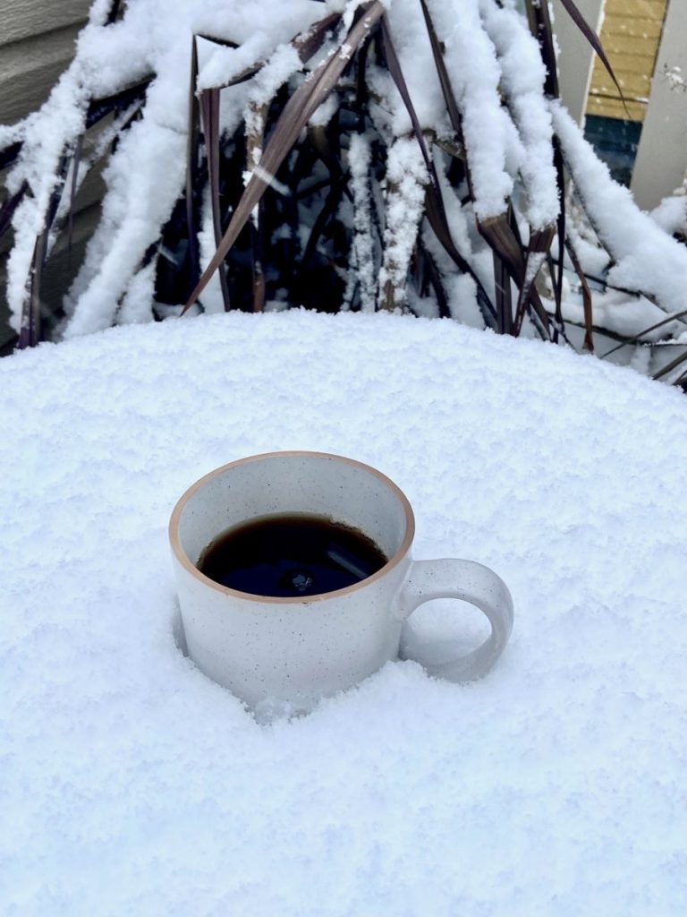 1. Suzanne, there’s so much to love about this post that I can’t pick just one picture to single out. There’s the cup of coffee sitting in the snow, the wave hitting the rock and the lavender field. Wow.