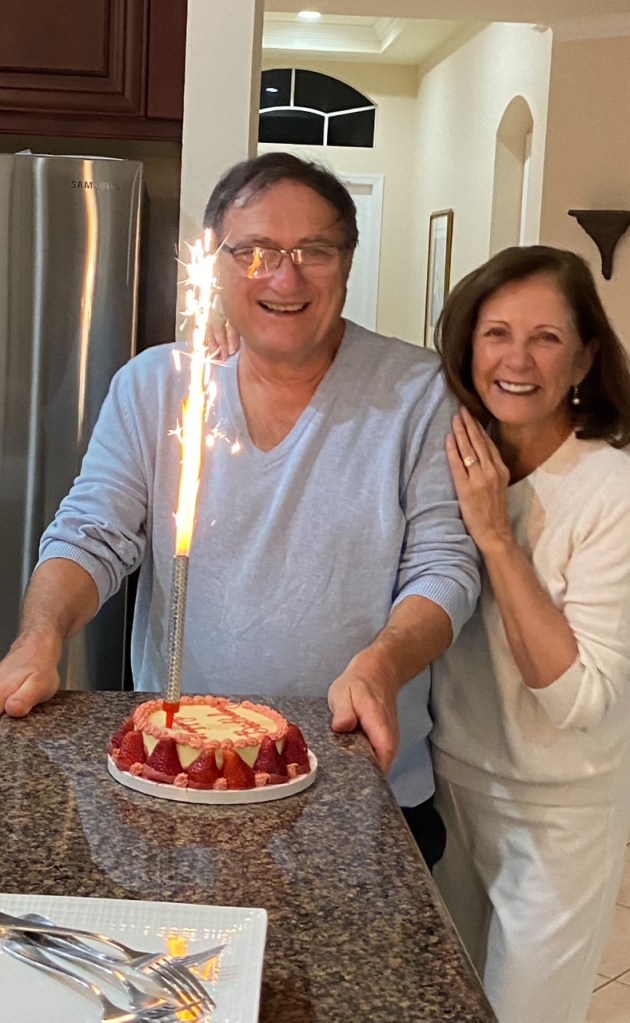 Your weight loss program is working well. You look very striking in your picture with Malcolm and the cheesecake.