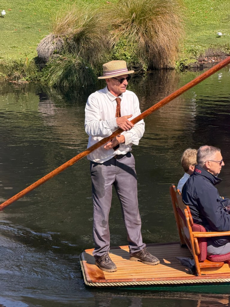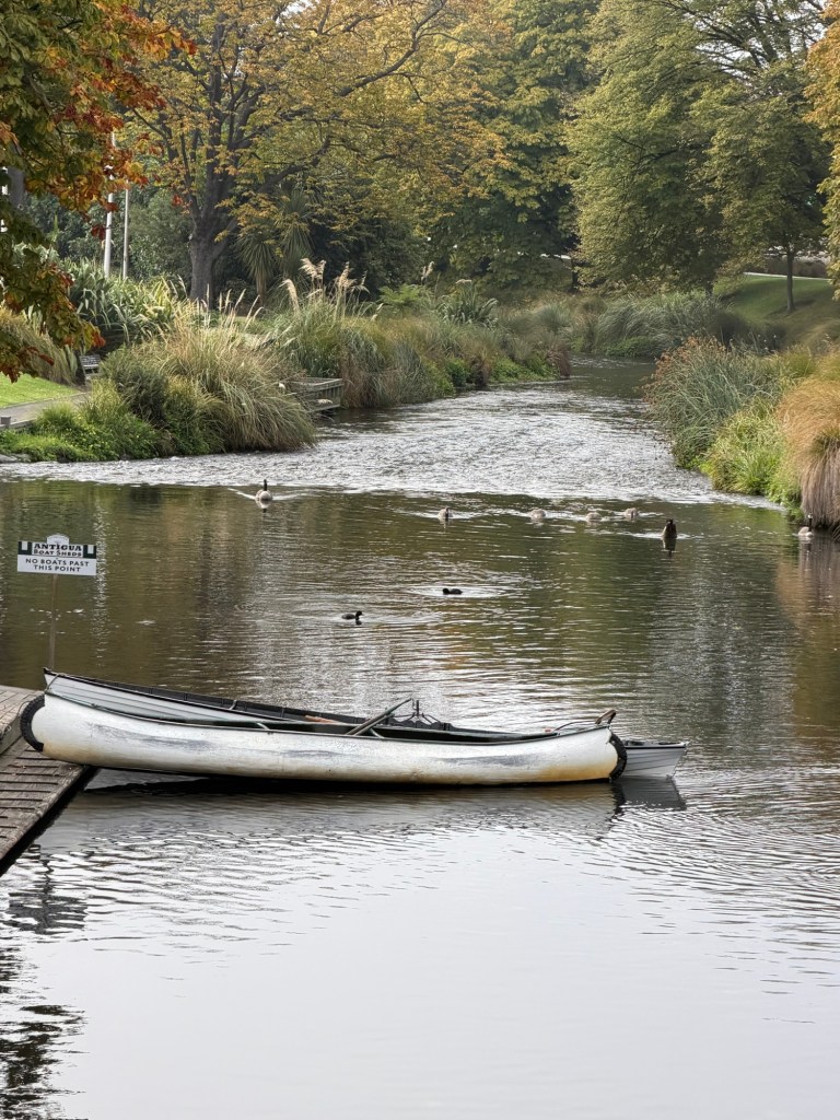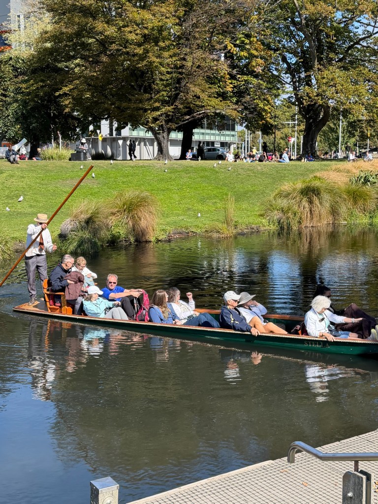 Punting is a popular tourist attraction in Christchurch. It happens on the Avon River and is as entertaining to passersby as it is to participants. Peaceful…Walking the tranquil path along the river toward the botanical garden was the helpful suggestion of a volunteer tourist assistant who we encountered after exiting the shuttle bus that transported us from the ship. Every port in New Zealand offered this service, but some folks were more knowledgeable and enthusiastic. 🤩 We were all set to take a more direct, less scenic path prior to our encounter. It pays to stop, ask questions and listen when exploring a new destination.