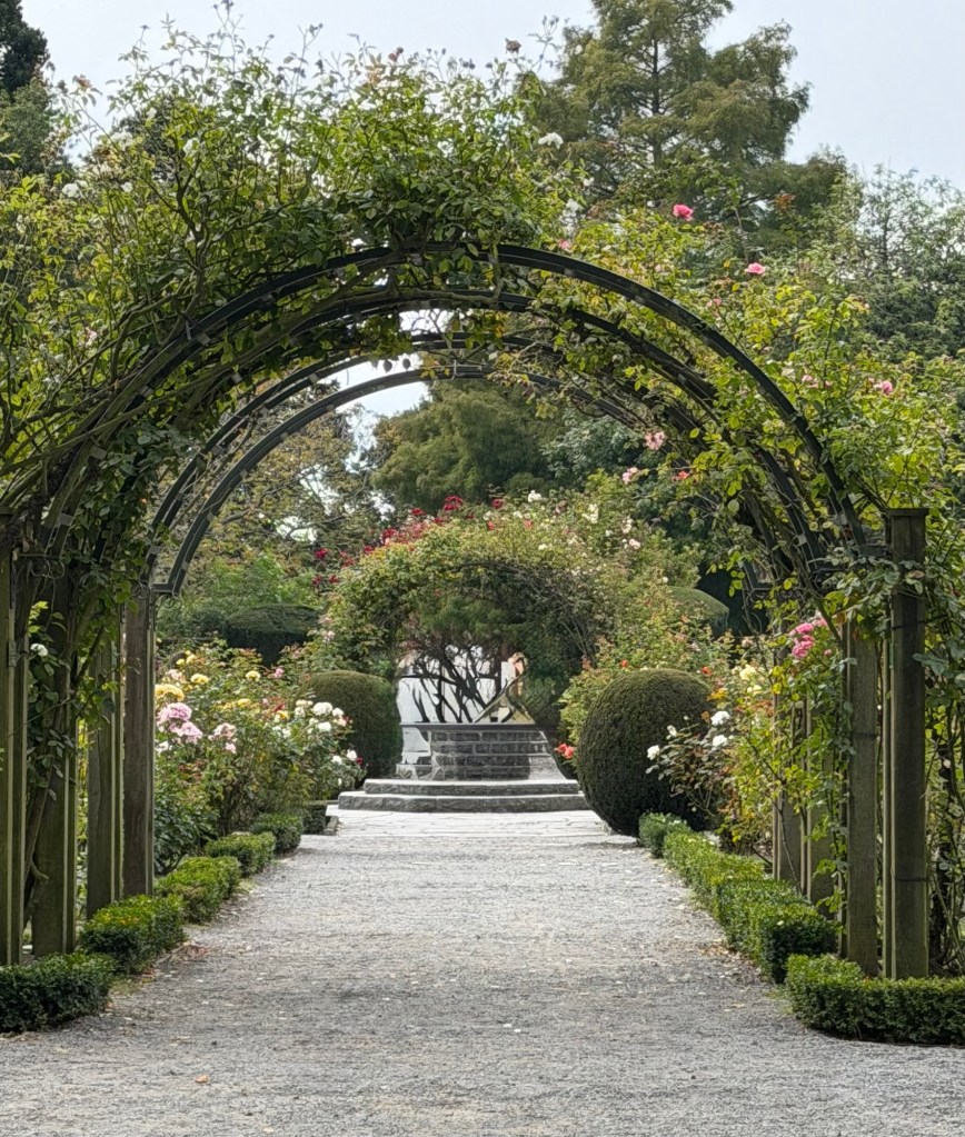 What’s in bloom depends on the time of year, but we were fortunate to catch the end of the season for roses, and dahlias at their height.