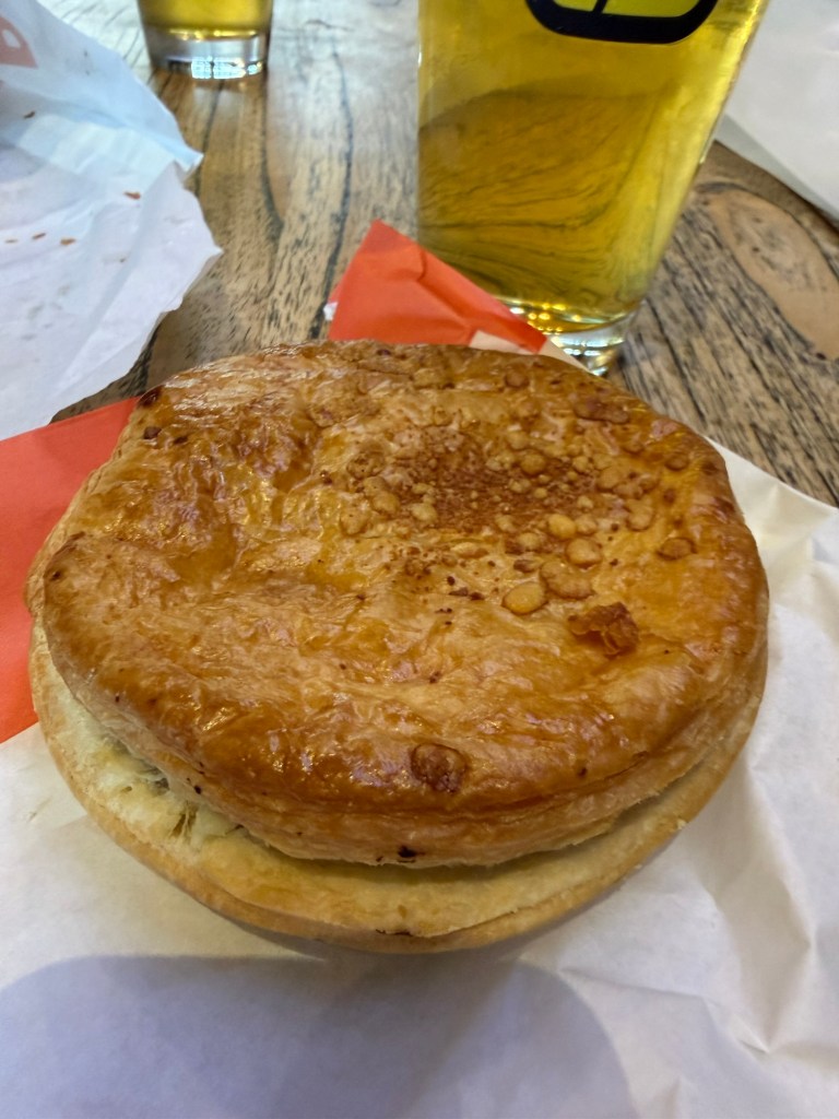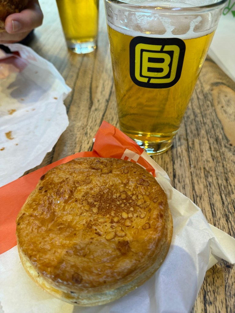 Determined to try a meat pie before leaving the city, we popped into the riverside marketplace for the popular lunch sandwich?? Pie?? Whatever it’s called, we loved it. Shame on me for not showing the inside of this handheld delight. The buttery, flaky buns were chock full of shredded beef in a thick gravy. Yum! Add a cold beer and the disappointment of a rainy day fades.